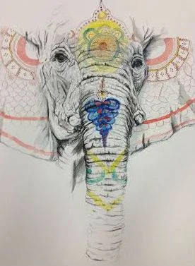 Wedding Elephant. Mixed Media on water color paper. 32” x 20”.