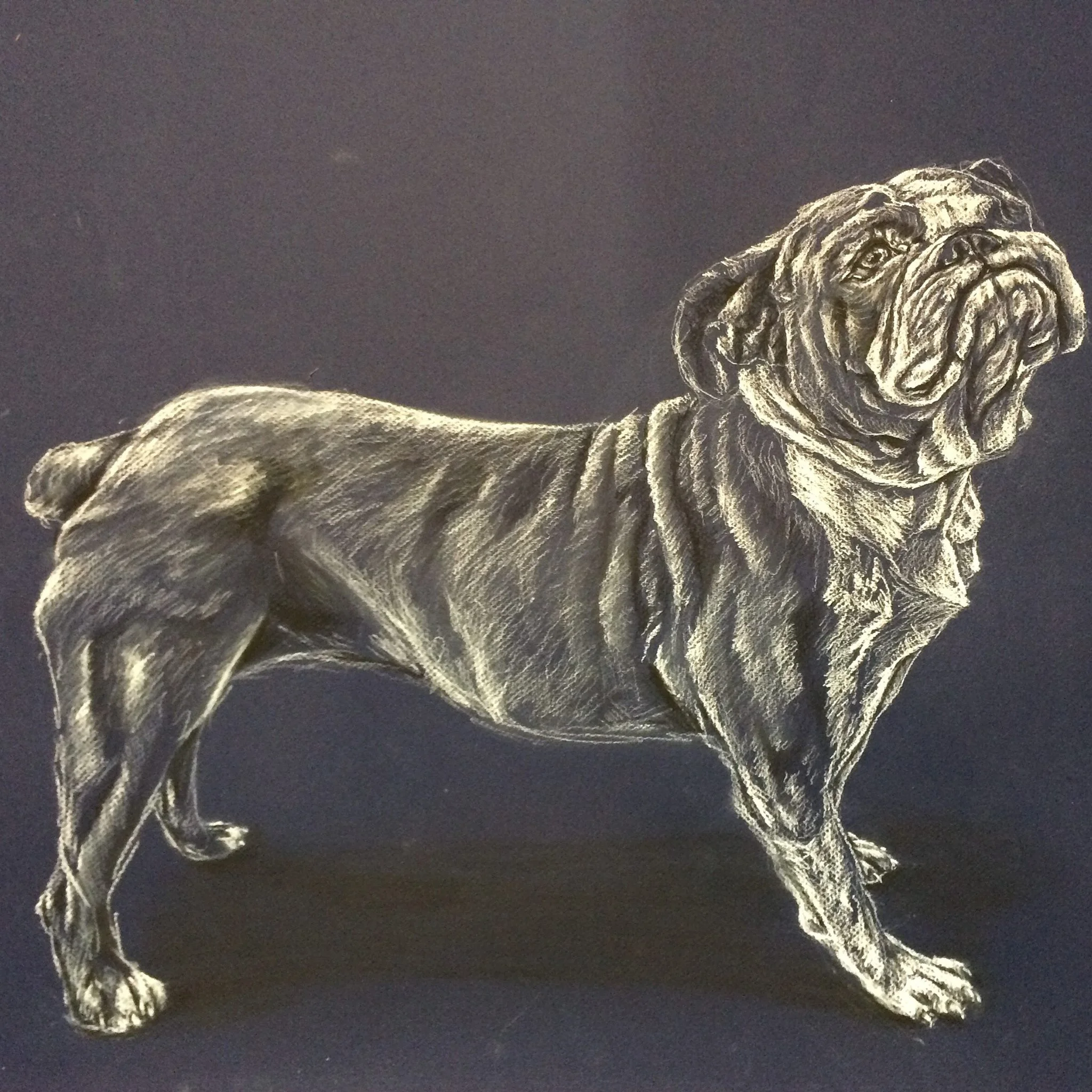 Little Nicky. White and Black Charcoal on navy paper. 18” x 24”.
